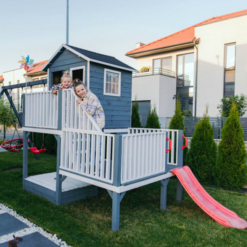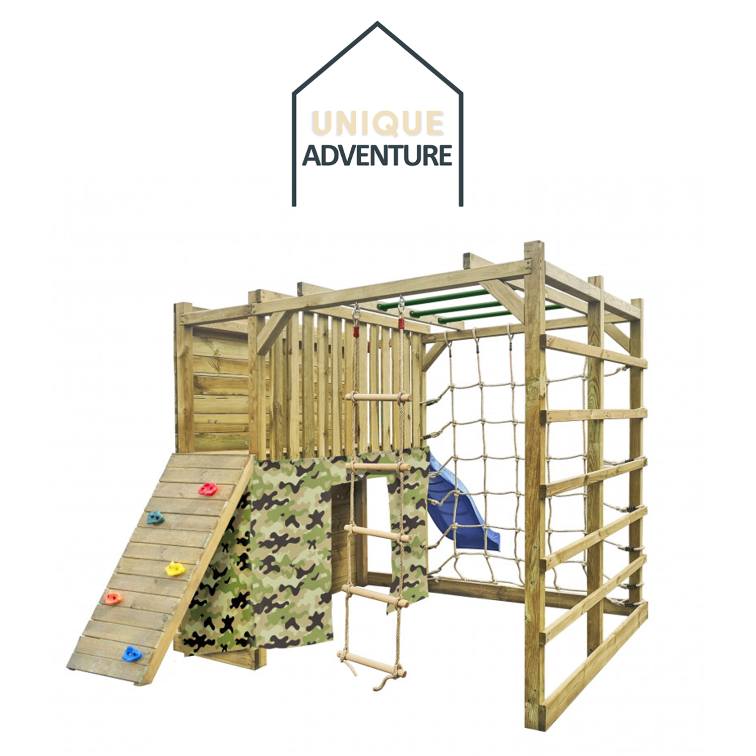 Spielplatz „Domi“ aus imprägnierter Kiefer – mit Rutsche, Schaukel & Kletterwand, 231×286×353 cm