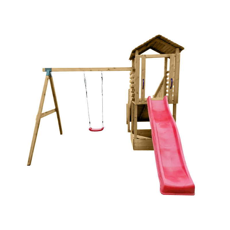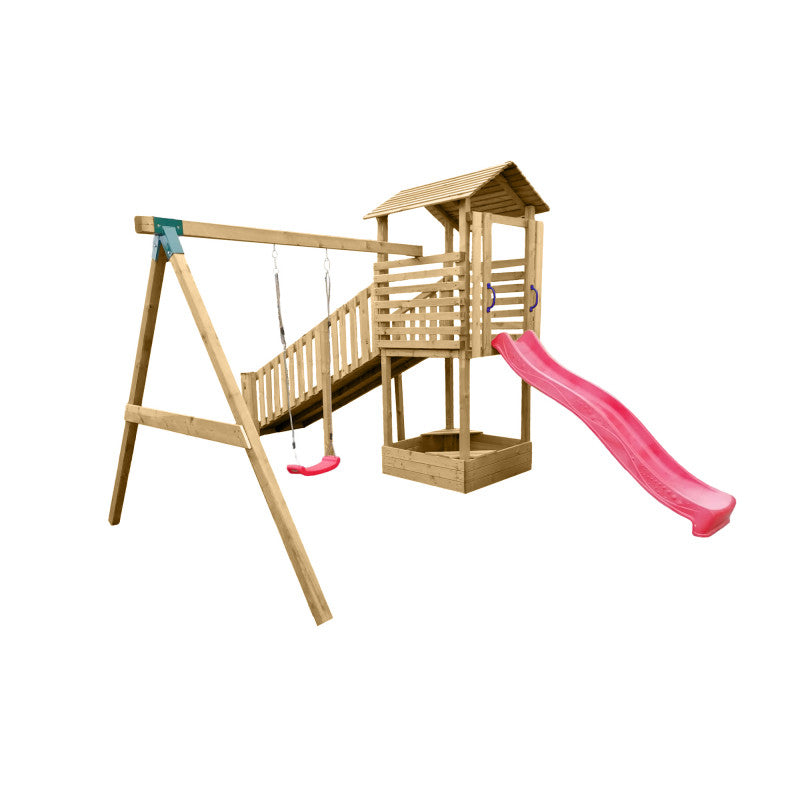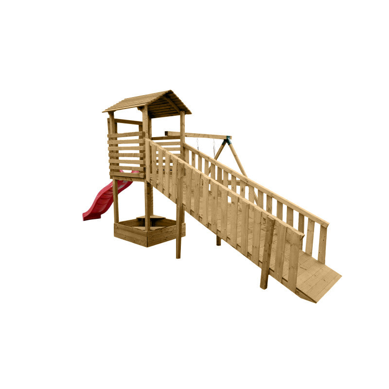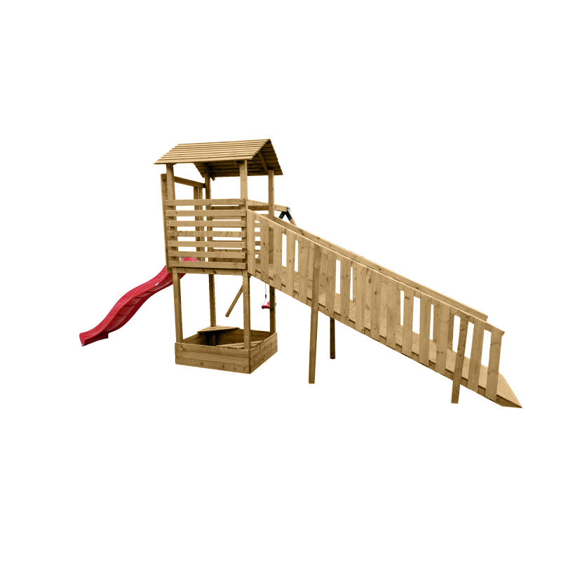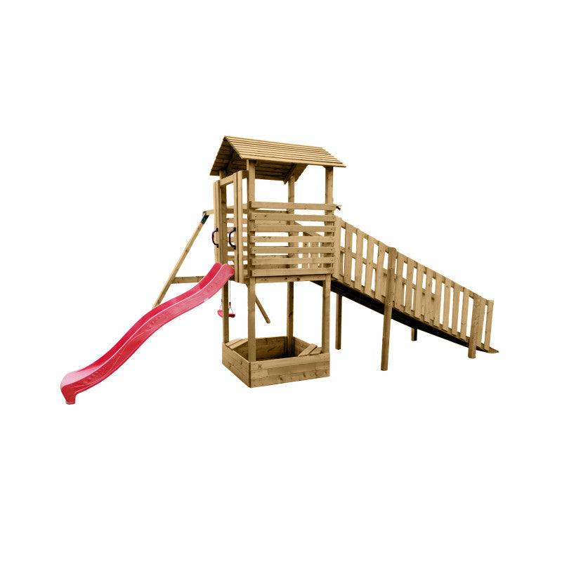 – Spielturm mit Rampe und Dach