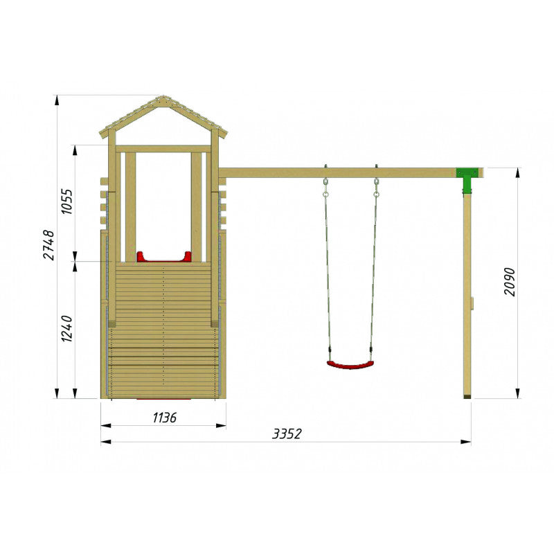 Gefertigt aus druckimprägnierter Kiefer bietet der Spielturm höchste Stabilität und Langlebigkeit. Das Holz wird mit dem chromfreien Imprägniermittel Wolmanit CX-8WB behandelt, das das Material zuverlässig vor Witterung, Schimmel und Insekten schützt – und dabei vollständig kindersicher ist. Die natürliche Holzfarbe kann sich mit der Zeit verändern, was ein Zeichen des natürlichen Alterungsprozesses und der hochwertigen Imprägnierung ist.