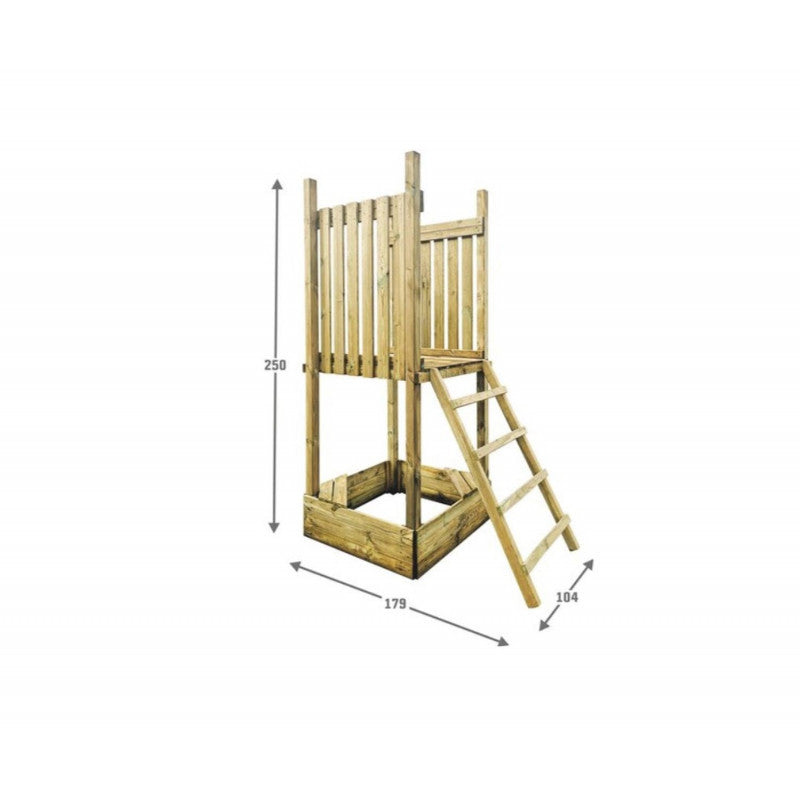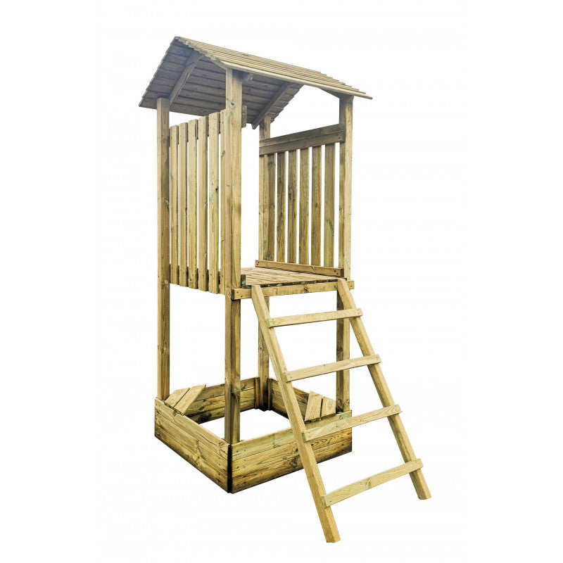 Abenteuerturm „Luno II“ aus imprägnierter Kiefer – mit Dach, Leiter & Sandkasten, TÜV-zertifiziert