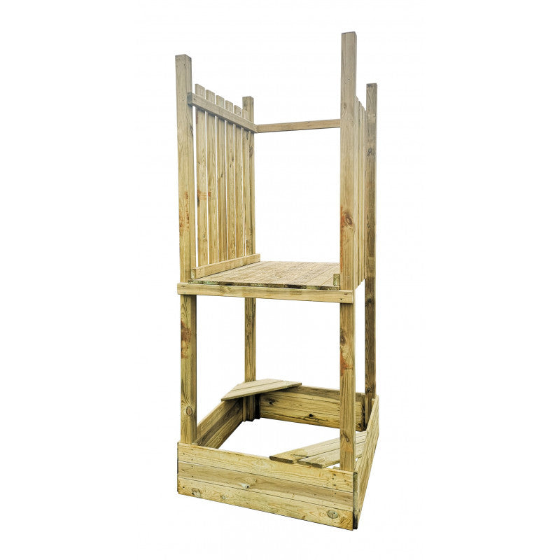 Der kompakte Turm ist wetterfest, langlebig und eine ideale Ergänzung für Familien, die ihren Garten in einen sicheren Ort für Spiel und Abenteuer verwandeln möchten.
