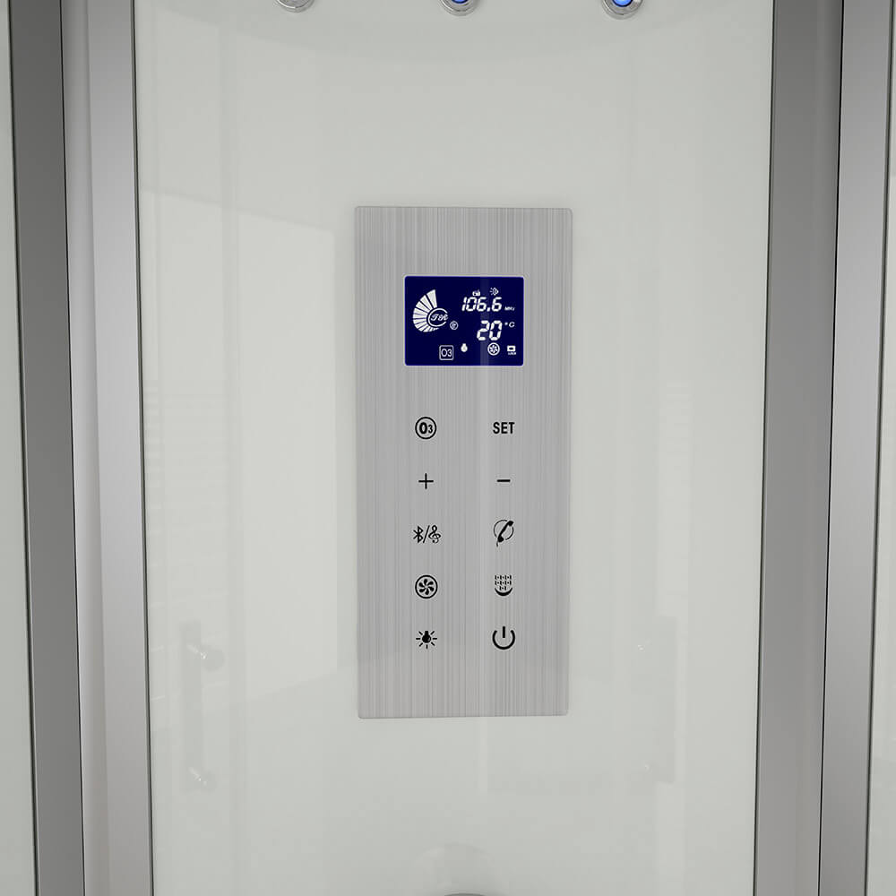 - Radio, Licht und Dampfsauna über Touchdisplay steuerbar
