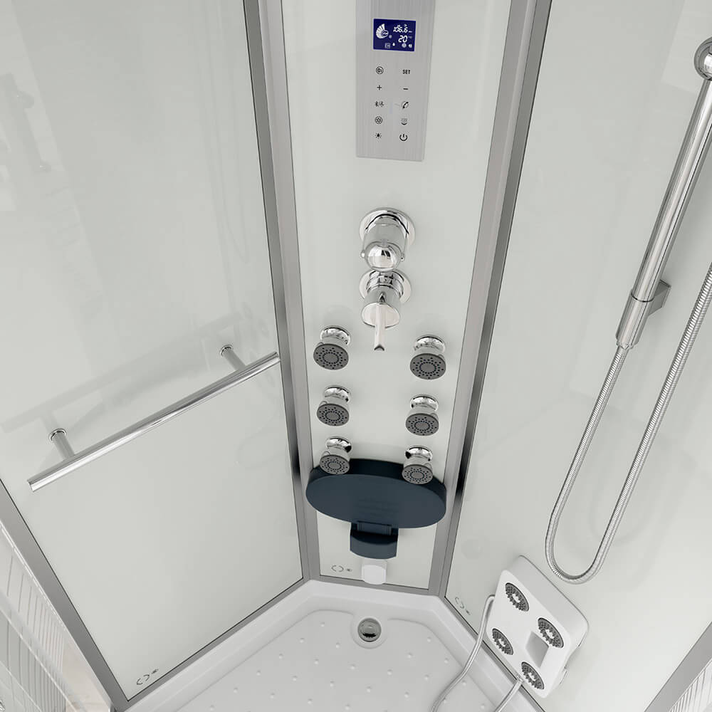 Diese Design-Dampf-Duschkabine ist ein wahres Multifunktions- und Raumsparwunder.