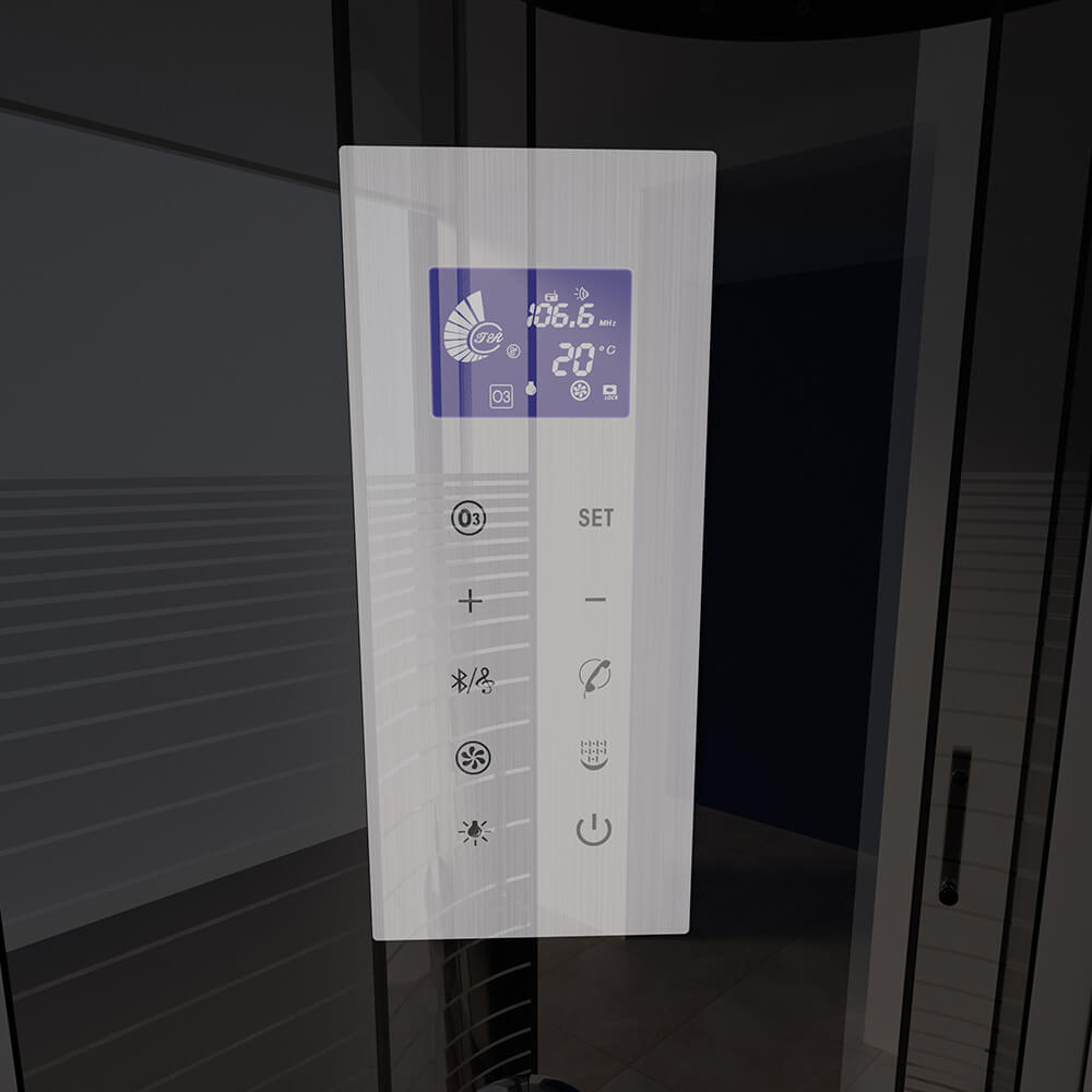 - Radio, Licht und Dampfsauna über Touchdisplay steuerbar