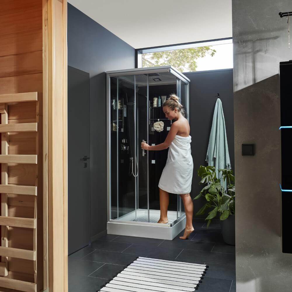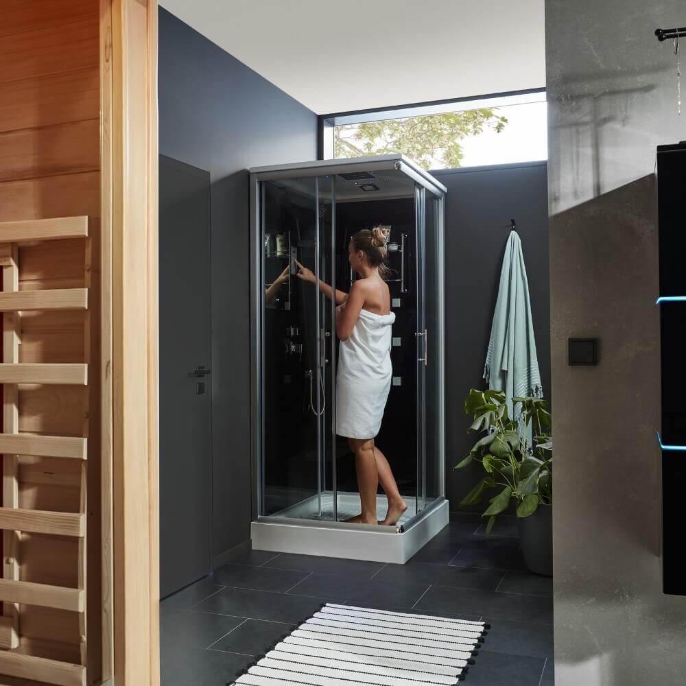 Diese elegante Duschkabine ist ein wahres Multifunktions- und Raumsparwunder.