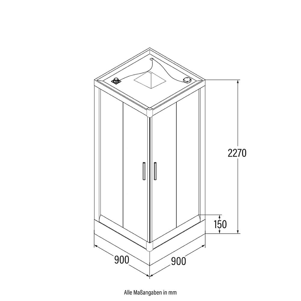 - Maße (B x T x H): 90 x 90 x 227 cm