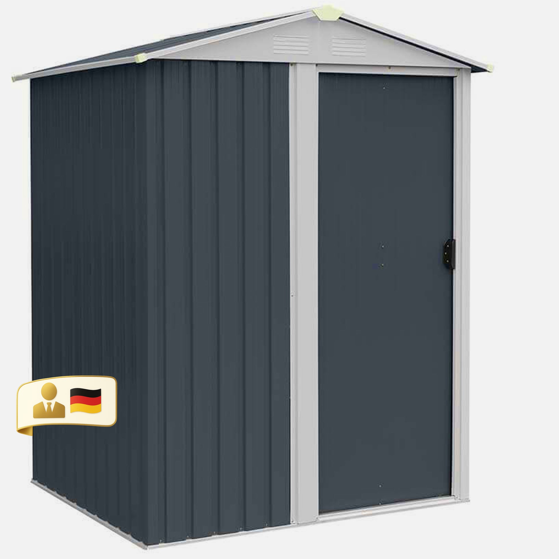 Durch die optimierte Sattelform und den rechteckigen Aufbau, bietet selbst dieses kleine Gerätehaus genügend Platz. Der Vorteil eines Metall Gartenhauses, im Vergleich zum Holz Gartenhaus ist das Material. Metall hält um einige Jahre länger als Holz, dieses kann nicht anlaufen oder durchweichen. Zusätzlich lassen sich auch brennbare Materialien gefahrloser lagern. Durch die verzinkten Stahlelemente ist das Metallgerätehaus wetterfest und somit langfristig gegen Kratzer und Rost geschützt. Außerdem verfügt dieser über zwei Belüftungsöffnungen, wodurch sich die Wärme in dem Metallschuppen nicht stauen kann. Die Luftzirkulation ist enorm wichtig, denn sie verhindert die Entstehung von Feuchtigkeit, Schimmel und schlechten Gerüchen. Mit der kleinen rechteckigen Form des Gartengeräteschuppens passt dieser auch gut in kleine Gärten oder sogar in einen Schrebergarten. Außerdem kann durch die Satteldachform der Regen und auch Laub besser abgleiten und es entsteht kein Stau.