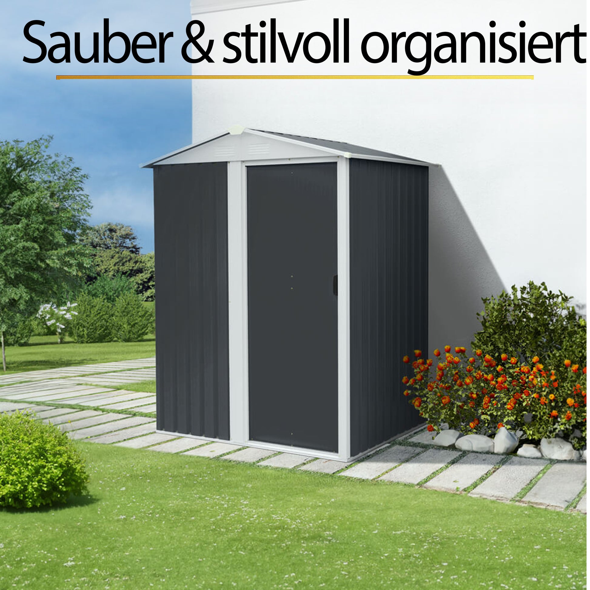 Der Geräteschuppen SERENO S ist eine optimale Lösung, um dein Gartenwerkzeug schnell und einfach zu verstauen.