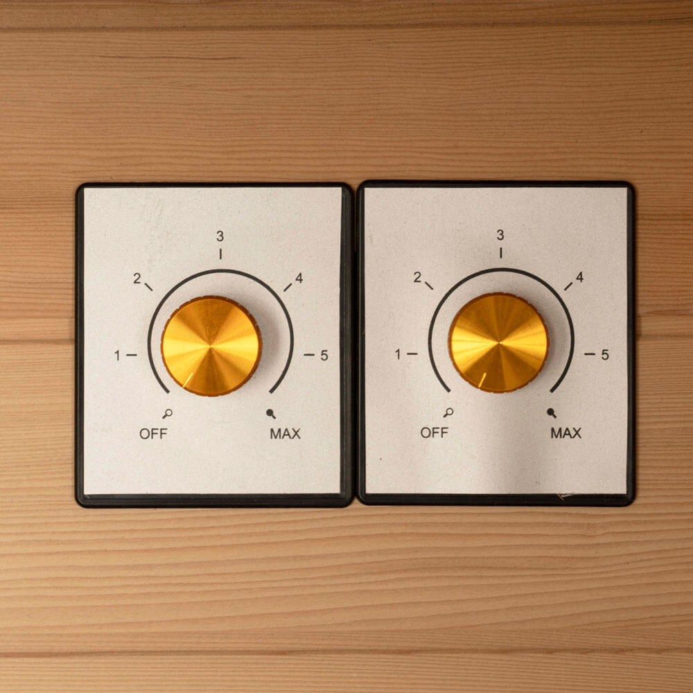 - Zusätzliche Bedienfelder für die hinteren Strahler: Die Intensität Die körperfreundliche Rückenheizung kann für jeden Benutzer individuell von milder bis intensiver Infrarotwärme eingestellt werden (5 Intensitätsstufen).
