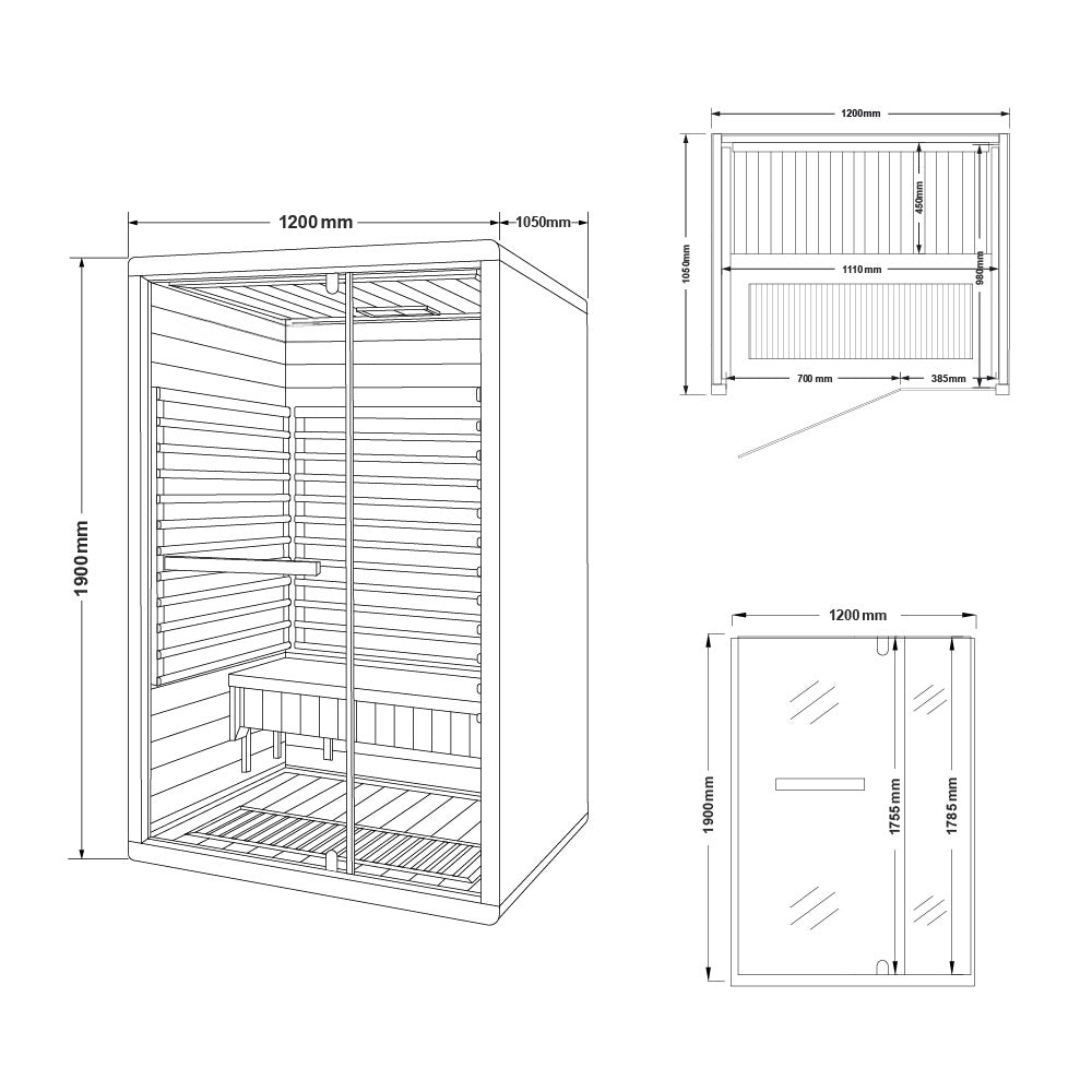 Infrarotkabine - 190 x 120 cm für 2 Personen