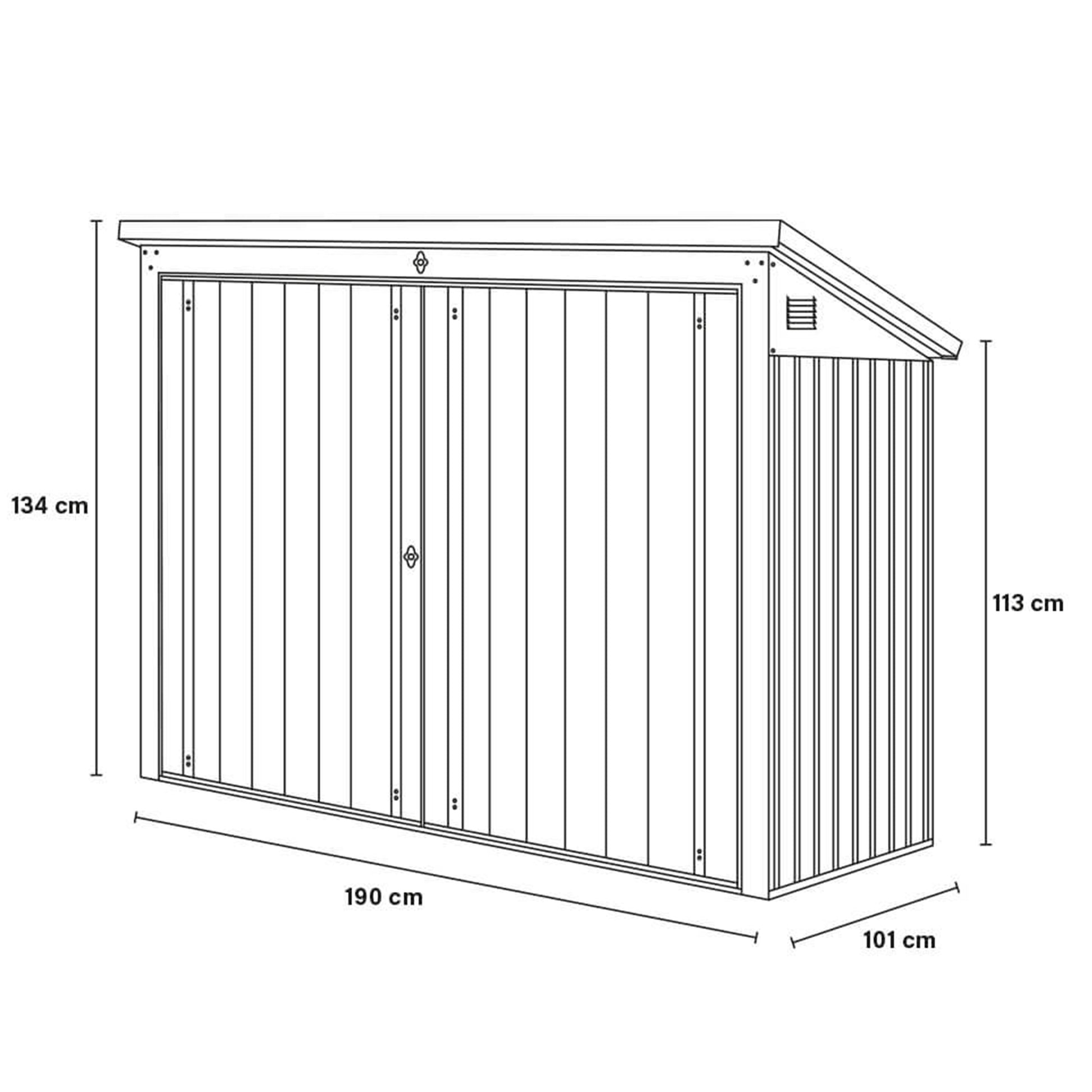 - Gesamtmaße inkl. Dachüberstand (B x L x H): 101 x 190 x 113/134 cm
