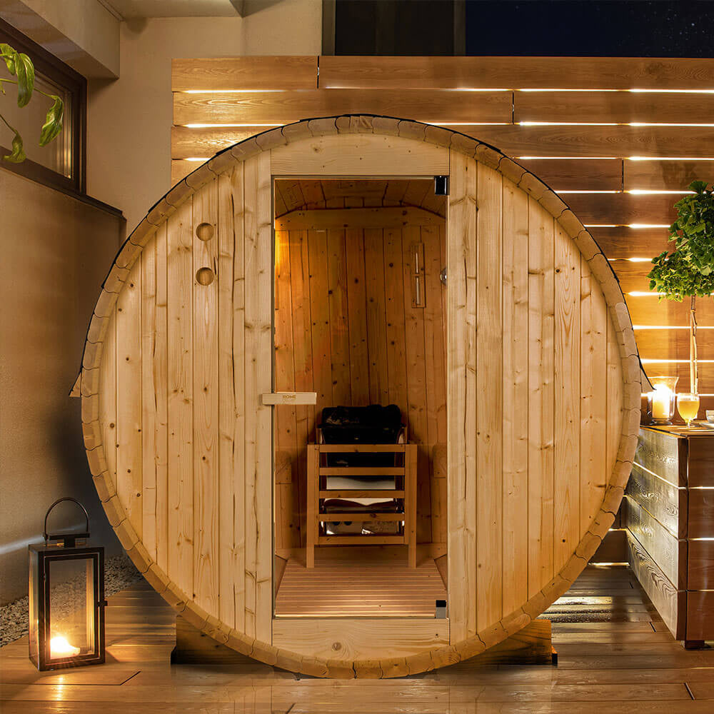 Bist du ein Fan vom klassischen Saunieren in deinem Outdoorbereich? Dann ist die Fasssauna genau das Richtige für dich! Die einzigartige Optik ist definitiv ein echter Blickfang in deiner Outdoor-Oase.