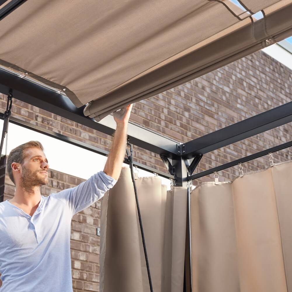 Wähle jetzt den traumhaft gestalteten, hochwertigen Gartenpavillon aus und genieße schon bald unvergessliche Sommertage im Grünen. Genieße die schöne Sommerzeit einfach zu zweit.