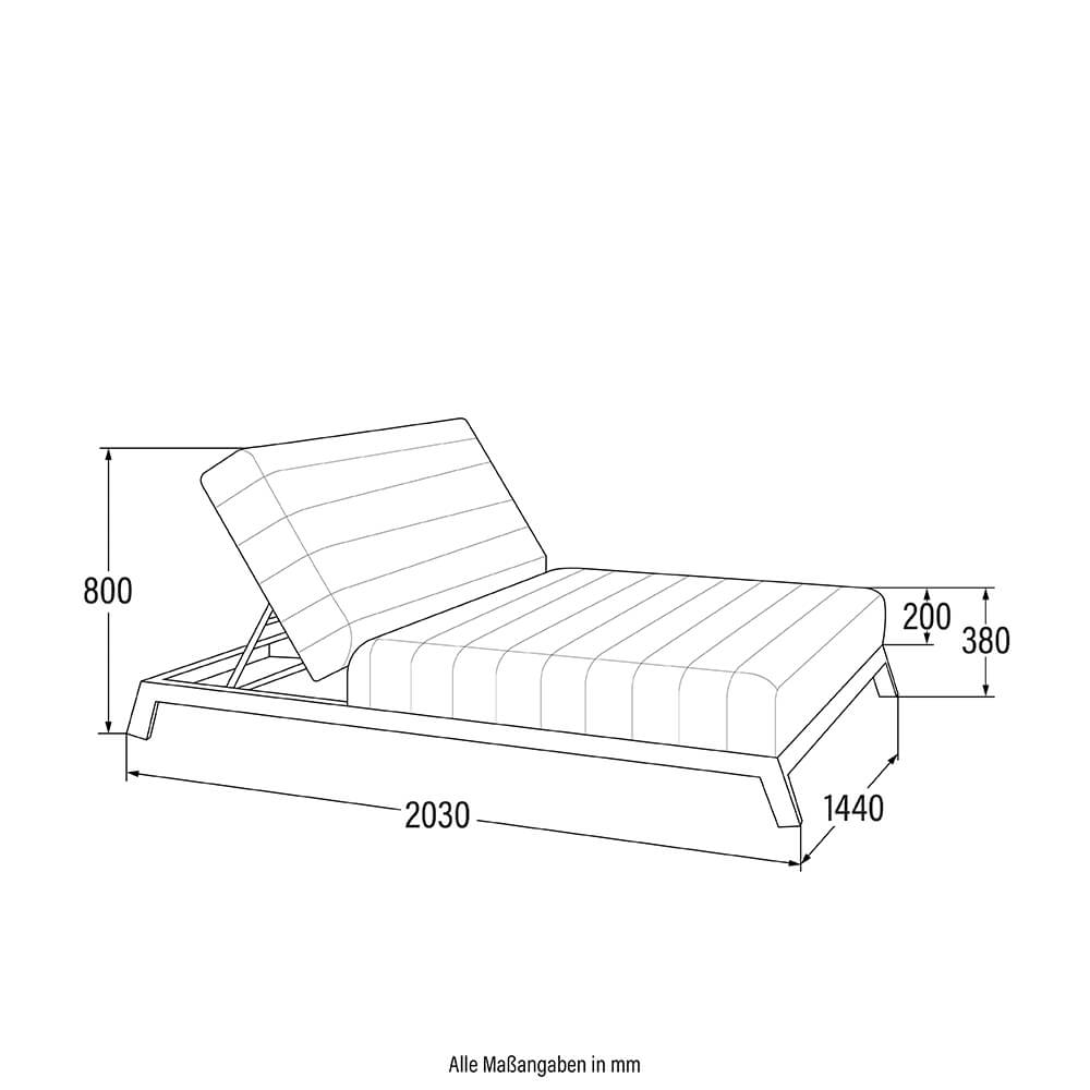 Sonnenliege für 2 mit verstellbarer Rückenlehne - 203 x 144 cm Anthrazit