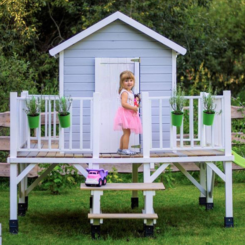 Dank der modularen Bauweise lässt sich das Haus einfach aufbauen: Viele Elemente wie Türen, Wände und Geländer sind bereits vormontiert. Mitgeliefert werden Schrauben, Verbindungselemente, Dachpappe und eine detaillierte Montageanleitung. Nach dem Aufbau kann das Spielhaus individuell gestrichen oder dekoriert werden, um es farblich perfekt in den Garten zu integrieren.