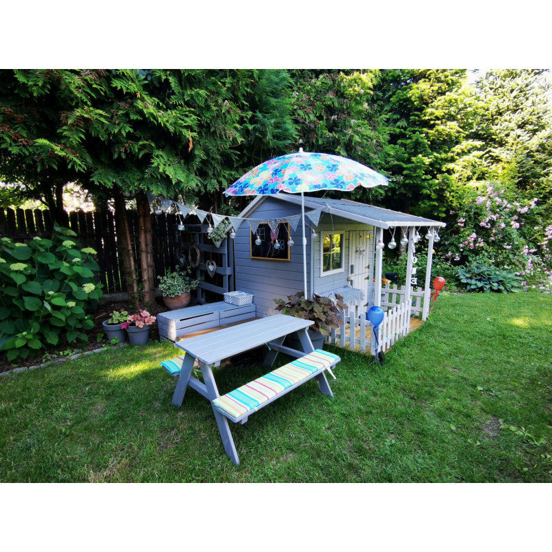 Hergestellt aus druckimprägniertem Kiefernholz überzeugt das Spielhaus durch seine hohe Stabilität und Witterungsbeständigkeit. Der verwendete Holzschutz Wolmanit CX-8WB ist chromfrei, umweltfreundlich und kindersicher. Er schützt das Holz zuverlässig vor Feuchtigkeit, Pilzen und Insekten, ohne die natürliche Struktur oder Farbe zu beeinträchtigen.