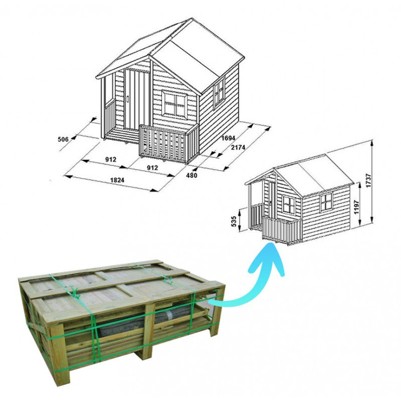 Der Aufbau ist einfach: Alle Elemente sind modular vorbereitet, inklusive Schrauben, Verbindungselementen und Dachpappe. Nach der Montage kann das Haus individuell gestrichen oder naturbelassen genutzt werden. Kleine natürliche Abweichungen in der Holzfarbe oder Struktur unterstreichen den authentischen Charakter des Materials.