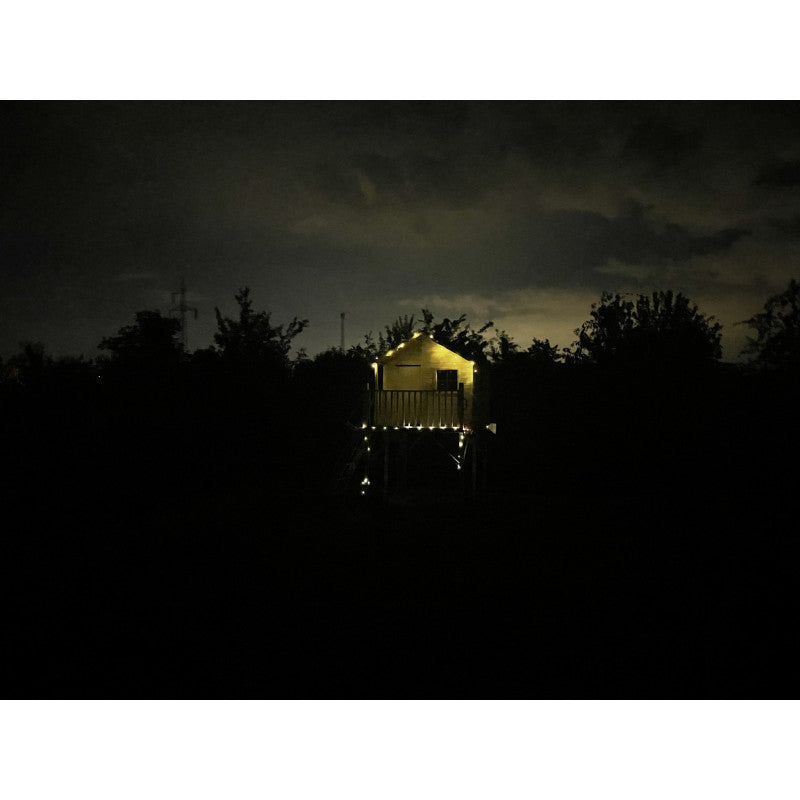 Die Holzoberflächen werden druckimprägniert mit Wolmanit CX-8WB – chromfrei, nicht toxisch und kompatibel mit gängigen Holzfarben. So ist das Spielhaus dauerhaft gegen Pilze, holzzerstörende Insekten und Ausbleichen geschützt. „Tayo“ ist TÜV Rheinland geprüft und EN 71-konform.