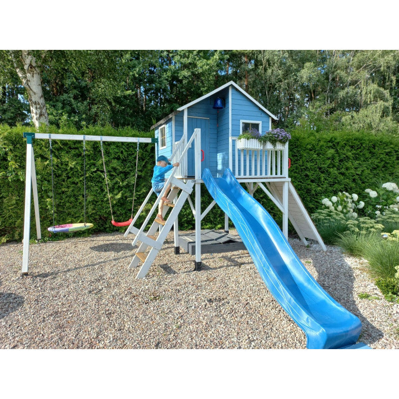 Spielhaus „Tayo Duo“ aus Holz – Doppelschaukel, 150 cm Podest, Plexiglas-Fenster, TÜV-geprüft