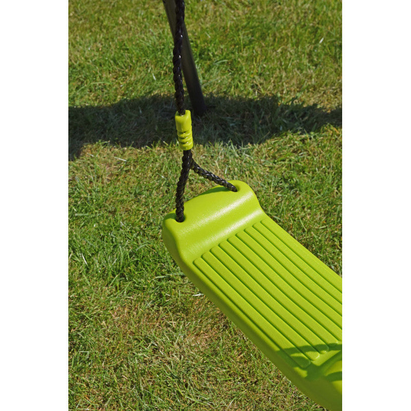 Alle Elemente sind aus hochwertigen, wetterbeständigen Materialien gefertigt. Die pulverbeschichtete Stahlstruktur schützt zuverlässig vor Korrosion, Kratzern und Witterungseinflüssen. Die Sitze sind rutschfest und belastbar, und dank verstellbarer Seile wachsen die Schaukeln mit den Kindern mit.